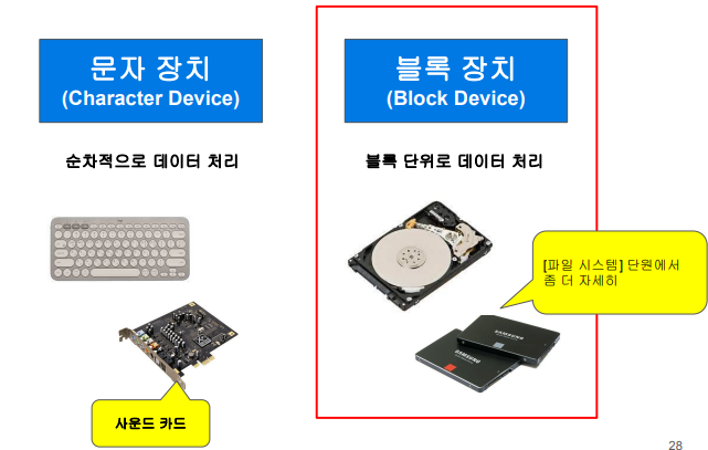 - 리눅스에서는 장치도 파일로 접근한다.