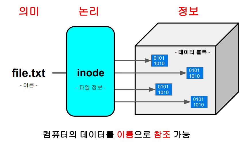 파일 : 컴퓨터 안의 정보를 이름이라는 수단으로 참조하게끔 하는 시스템