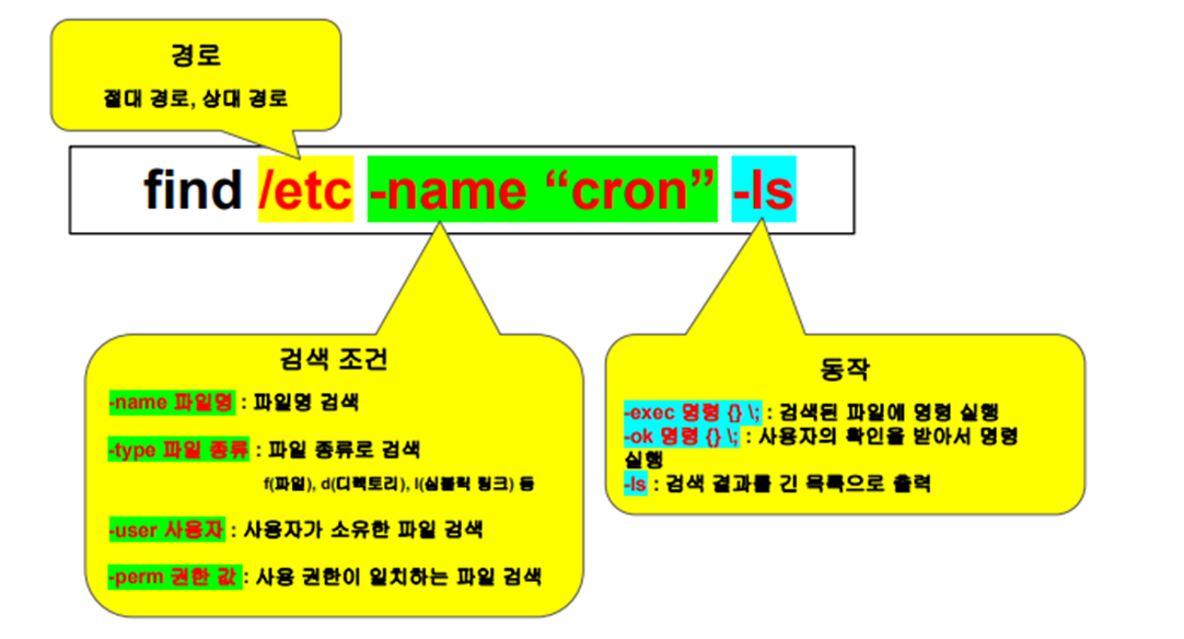 - 기능 : 지정한 위치에서 조건에 맞는 파일 및 디렉토리를 검색